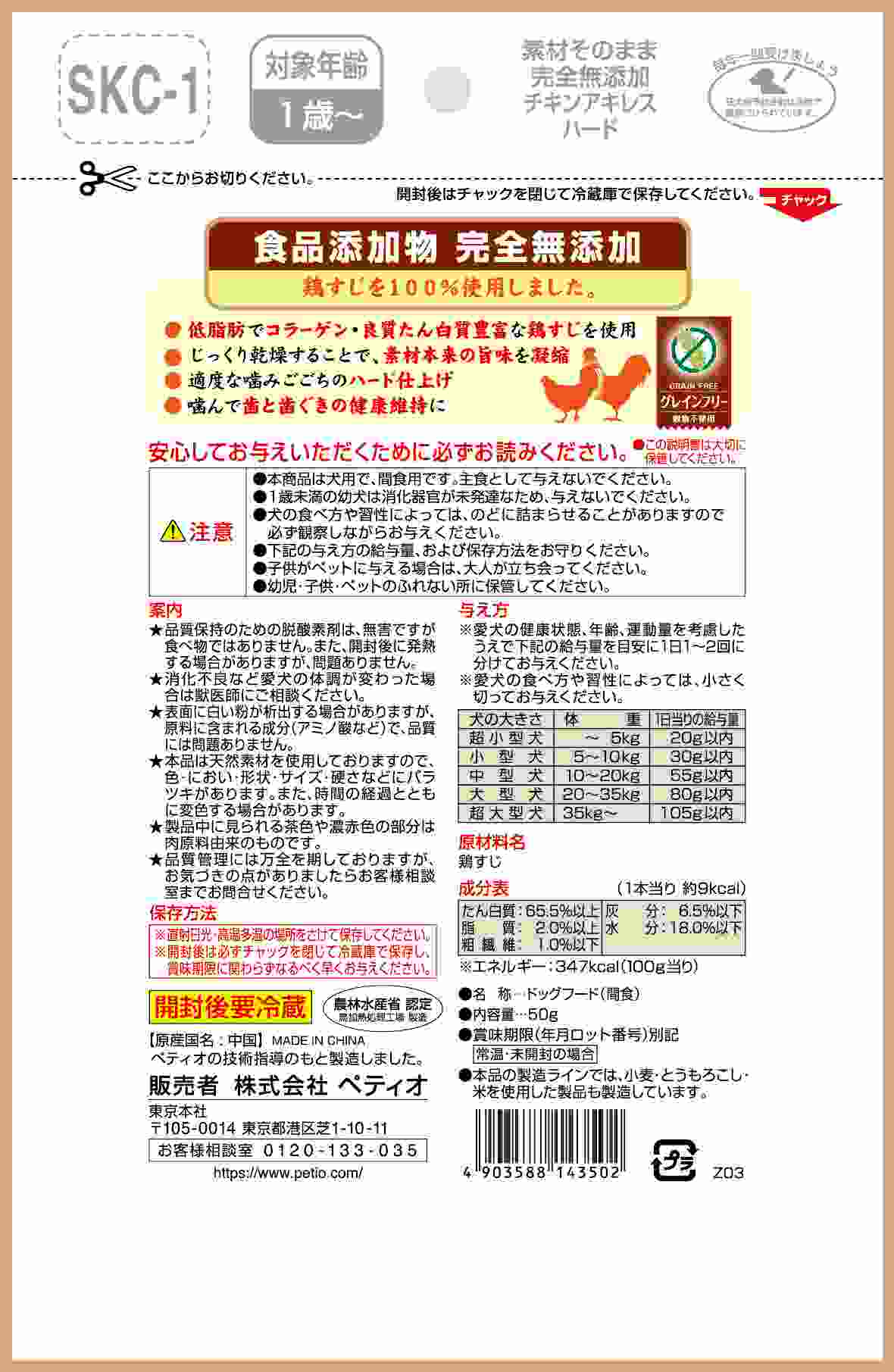 ペティオ 素材そのまま 完全無添加 チキンアキレス ハード 50g