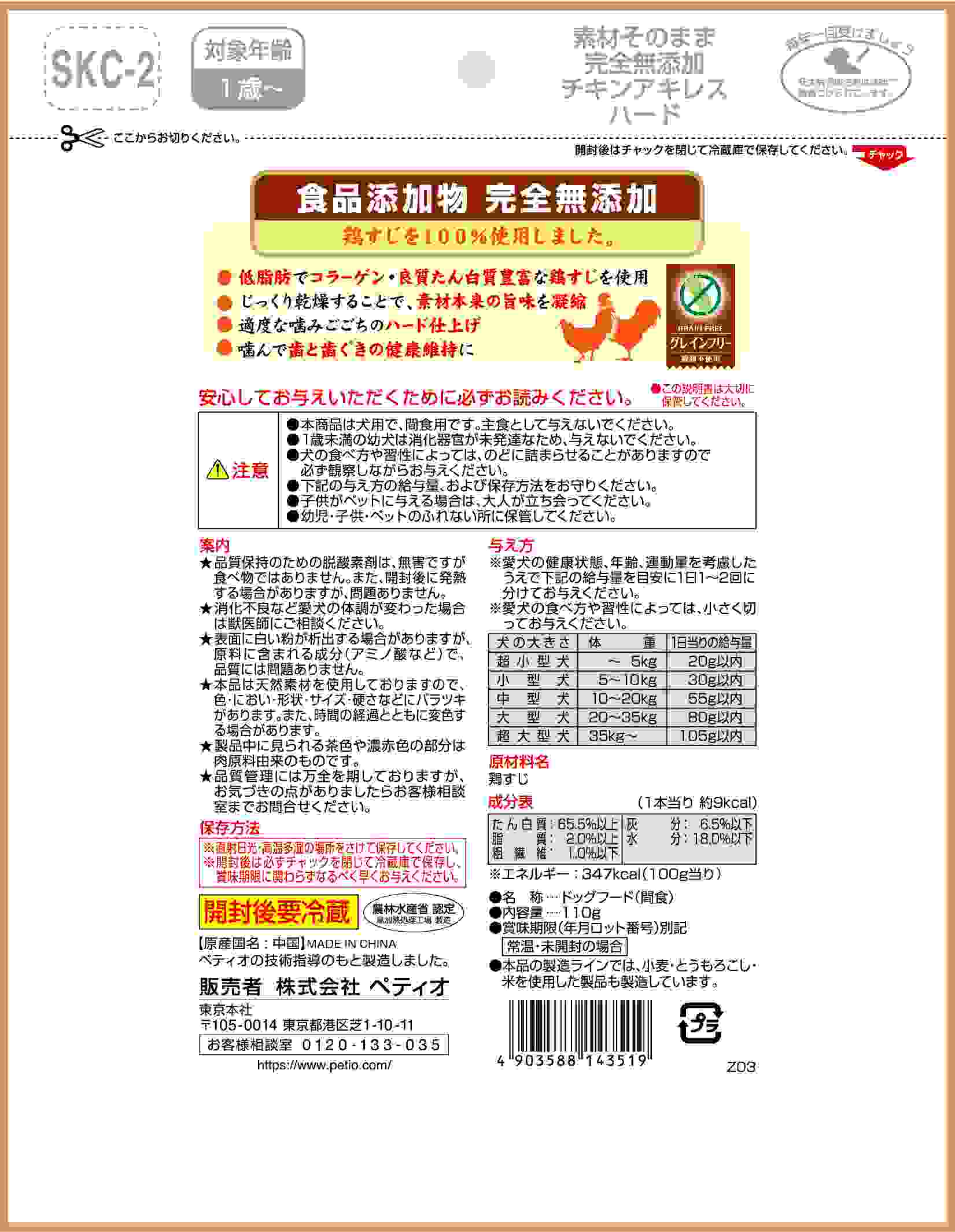 ペティオ 素材そのまま 完全無添加 チキンアキレス ハード 110g