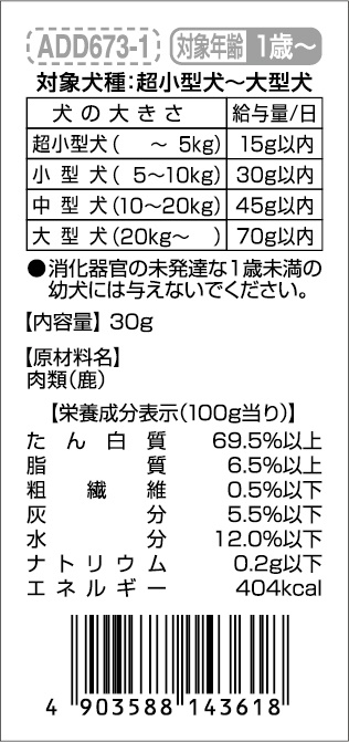 アドメイト 無添加プレミアム 鹿肉ジャーキー 30g