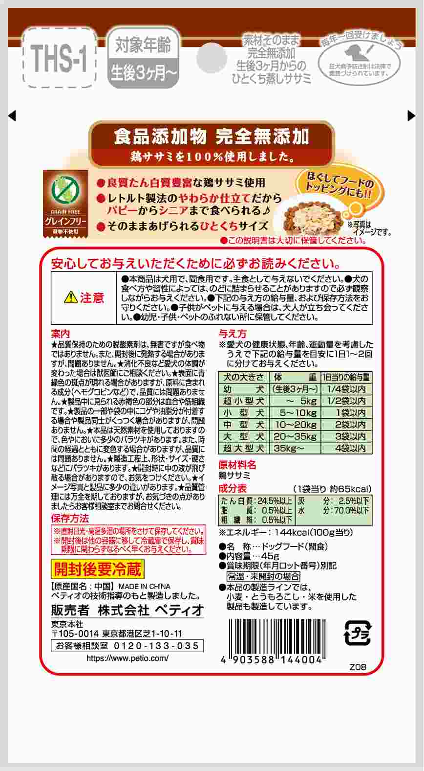 ペティオ 素材そのまま 完全無添加 生後3ヶ月からのひとくち蒸しササミ 45g