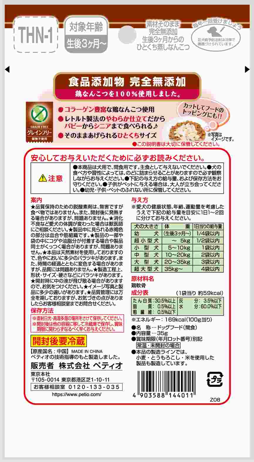 ペティオ 素材そのまま 完全無添加 生後3ヶ月からのひとくち蒸しなんこつ 35g
