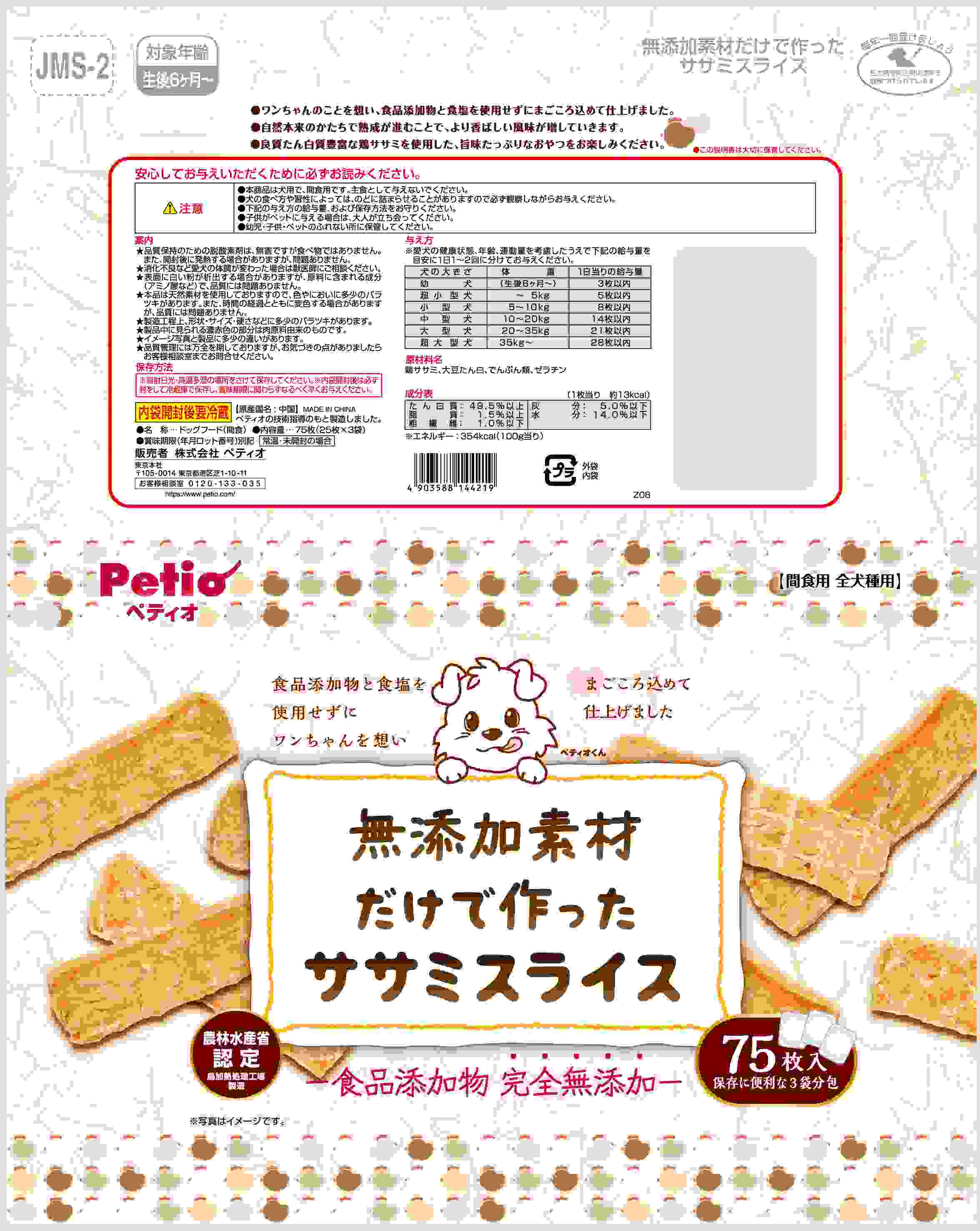 ペティオ 無添加素材だけで作った ササミスライス 75枚入