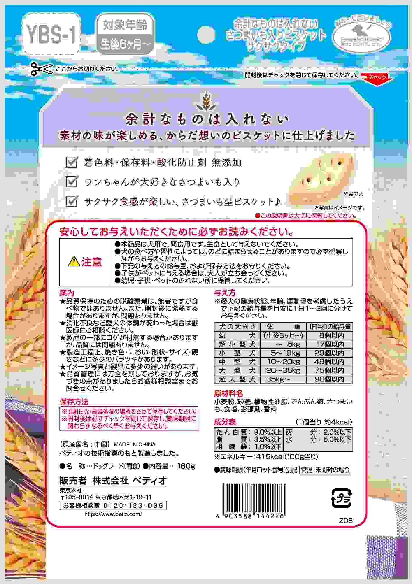 ペティオ 余計なものは入れない さつまいも入り ビスケット サクサクタイプ 160g