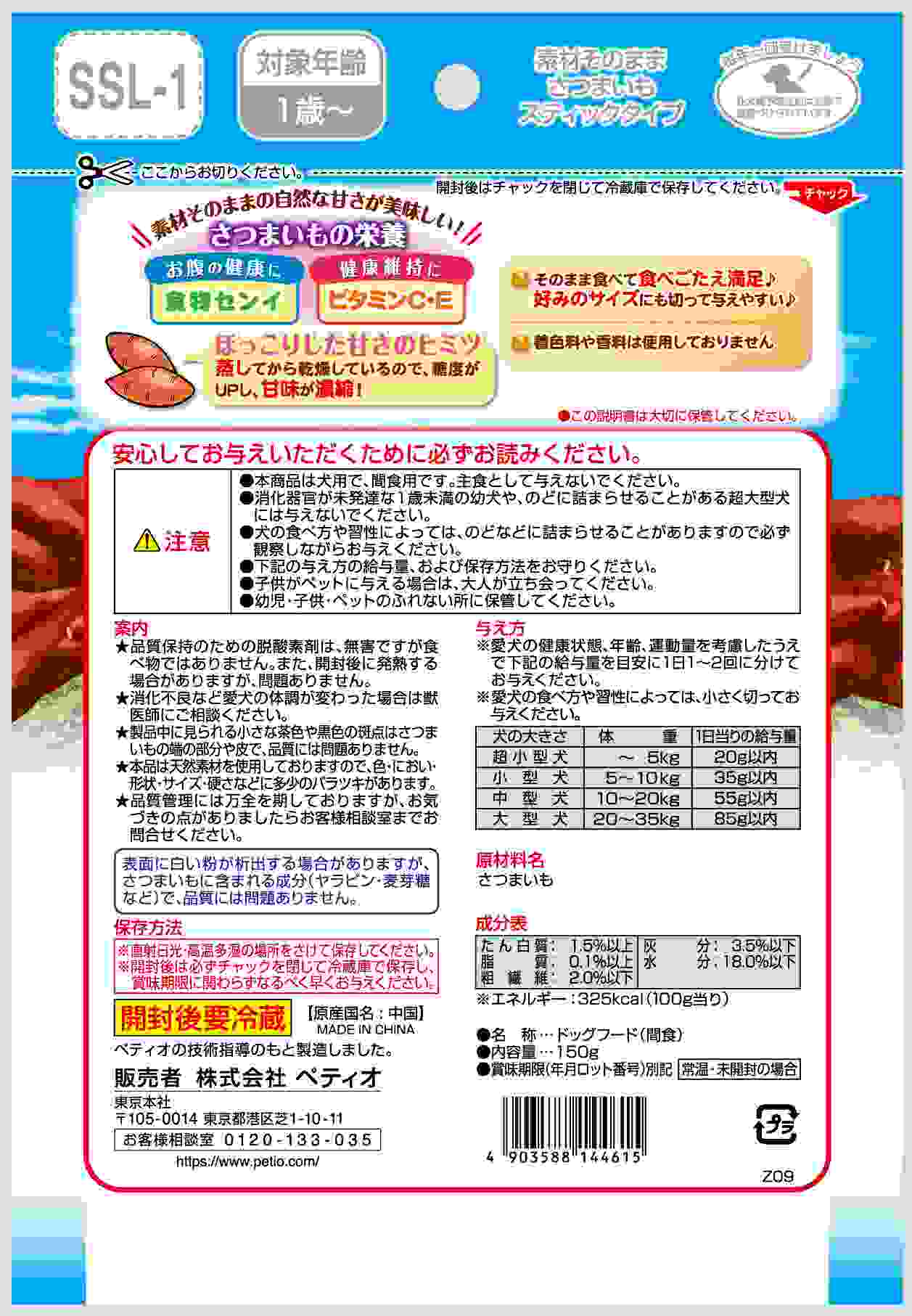 ペティオ 素材そのまま さつまいも スティックタイプ 150g