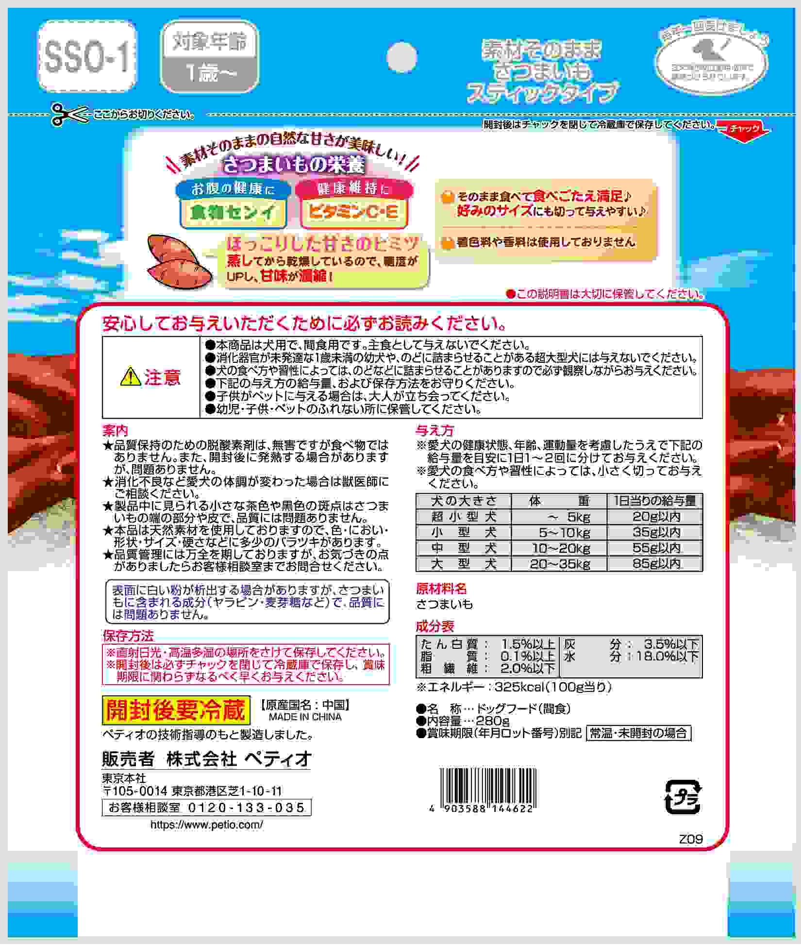 ペティオ 素材そのまま さつまいも スティックタイプ 280g
