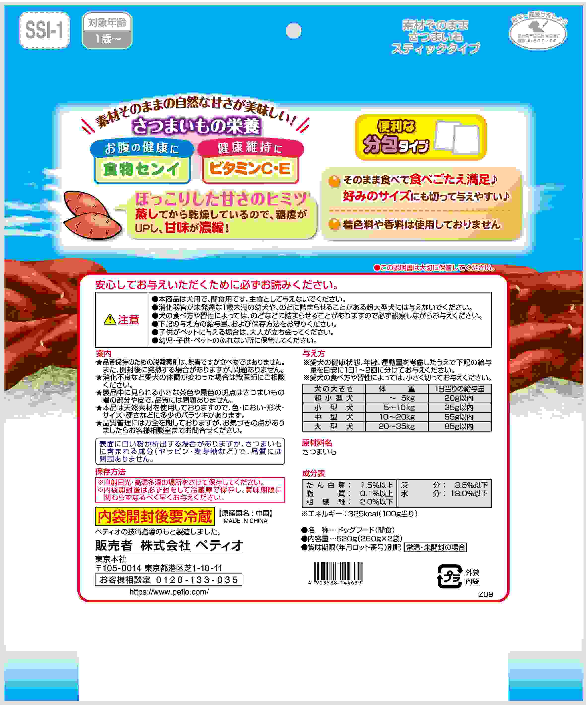 ペティオ 素材そのまま さつまいも スティックタイプ 520g