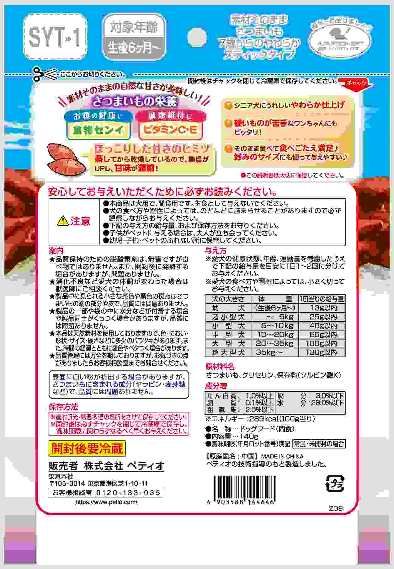 ペティオ 素材そのまま さつまいも 7歳からのやわらかスティックタイプ 140g