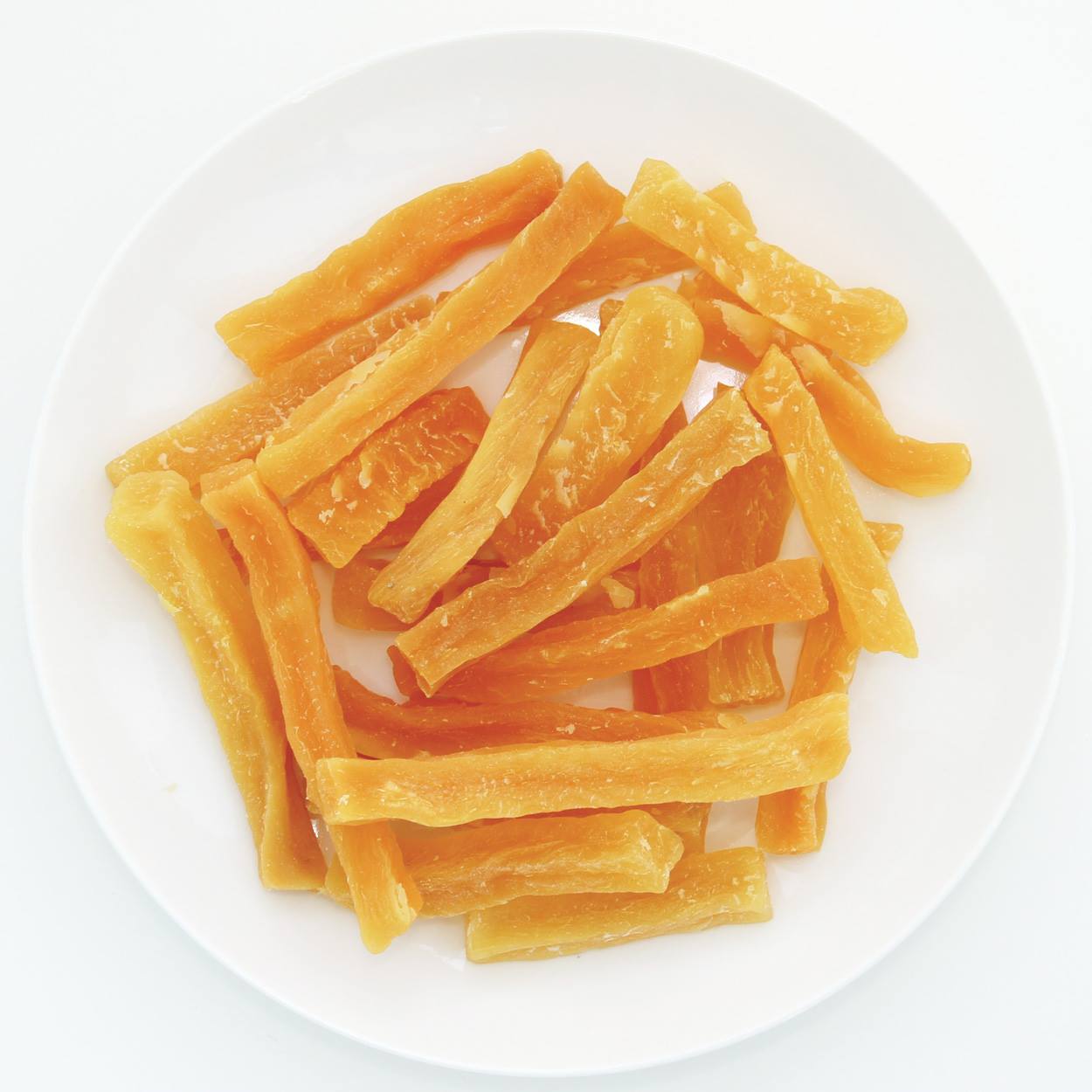 蒸してから乾燥しているので、糖度がUPし、甘味が濃縮!素材そのままの自然な甘さが美味しい!ほっこりやわらか仕上げだから、硬い物が苦手なワンちゃんにもオススメ!着色料・香料 無添加。