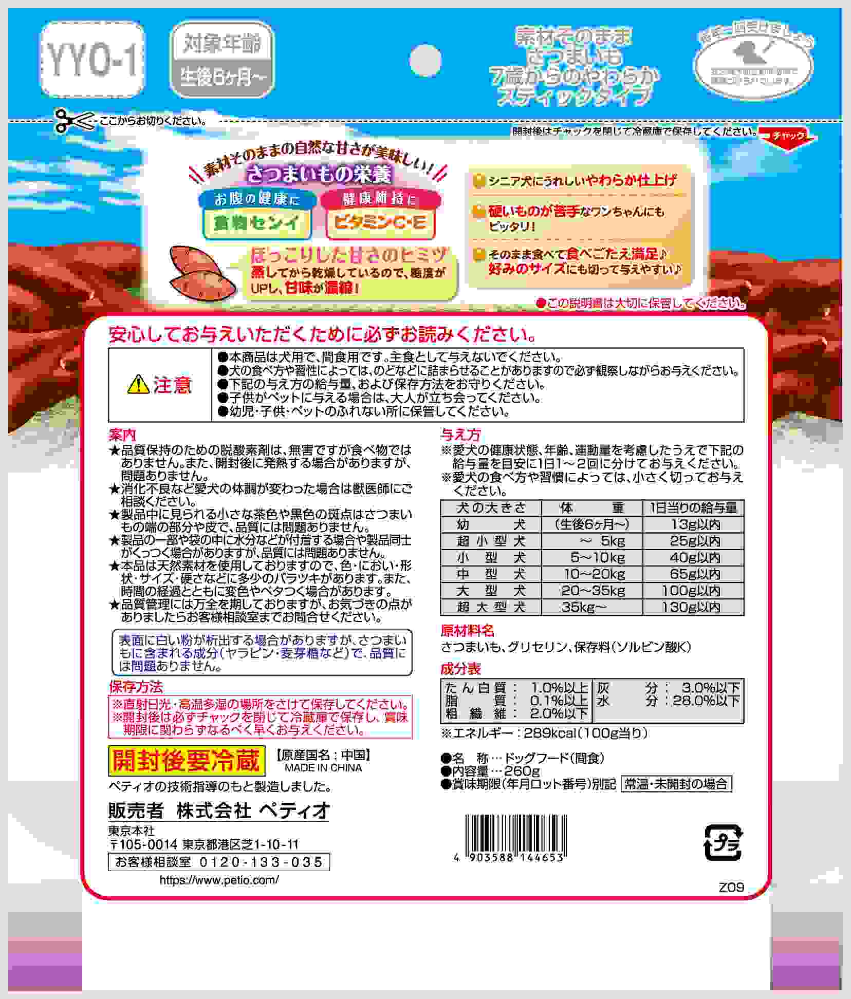 ペティオ 素材そのまま さつまいも 7歳からのやわらかスティックタイプ 260g