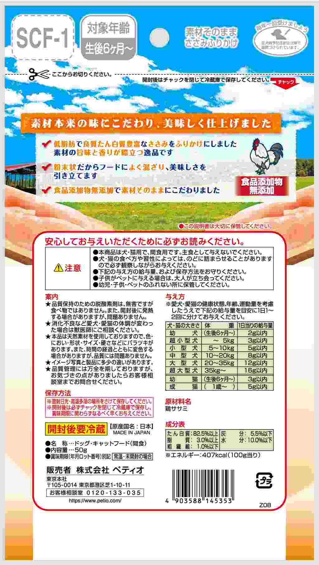 ペティオ 素材そのまま ささみふりかけ 50g