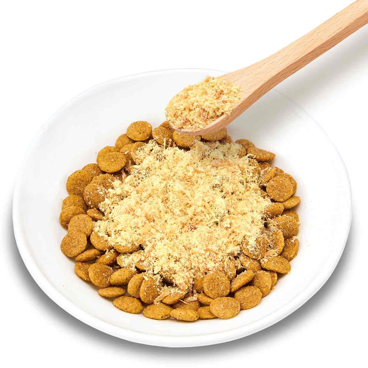 食品添加物無添加で素材そのまま。粉末状だからフードに良く混ざり、美味しさを引き立てます。低脂肪で良質たん白質豊富なささみを使用。