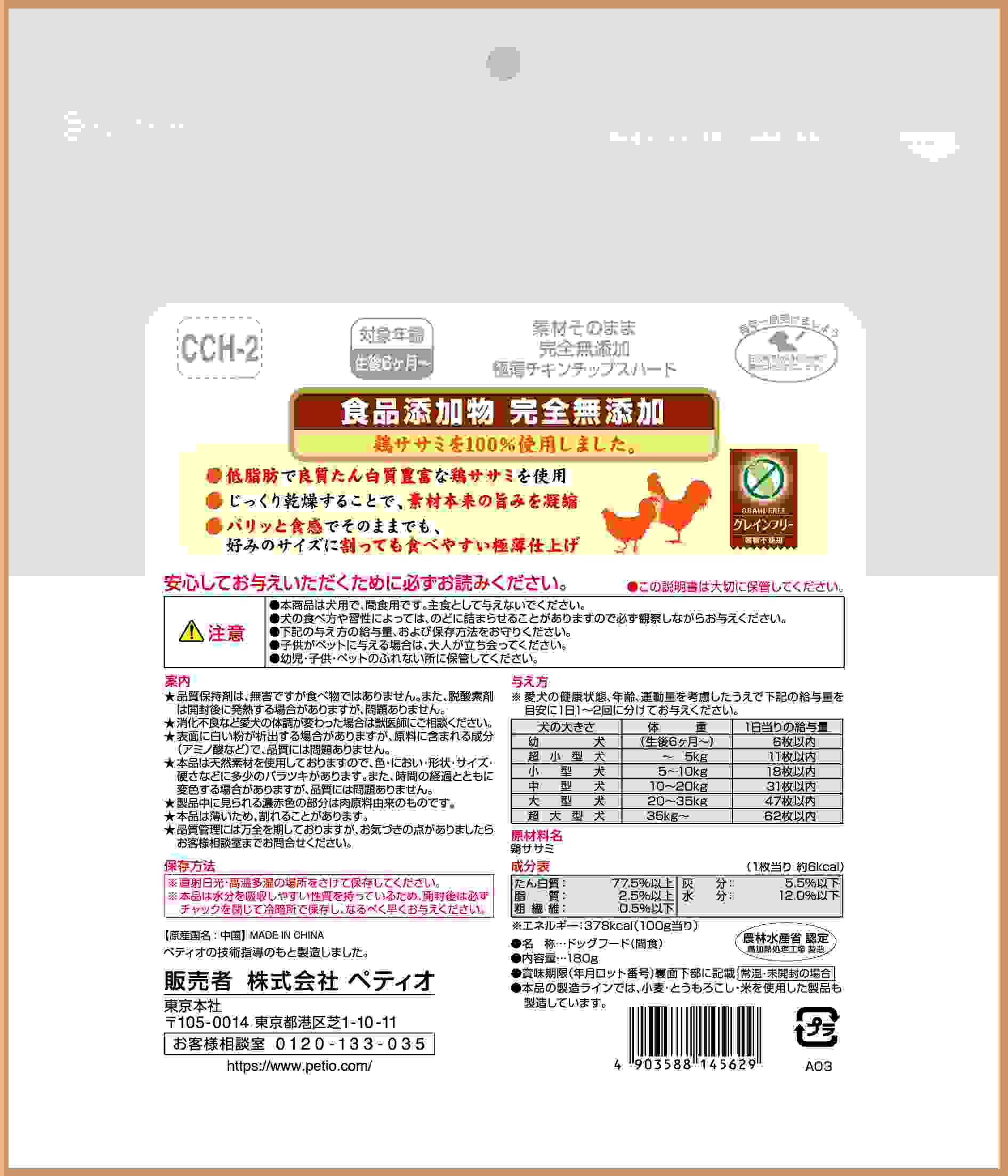 【3月31日終売予定】ペティオ 素材そのまま 完全無添加 極薄チキンチップスハード 180g