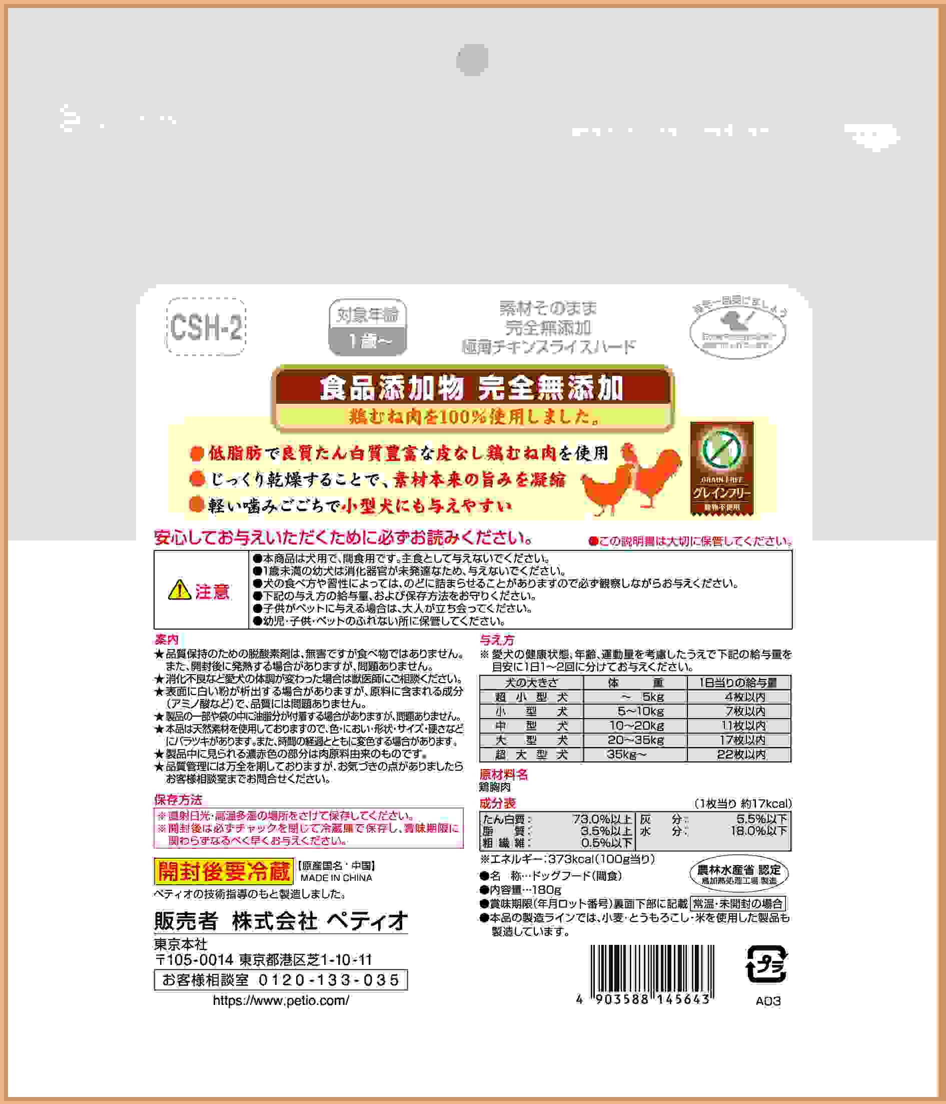 ペティオ 素材そのまま 完全無添加 極薄チキンスライスハード 180g