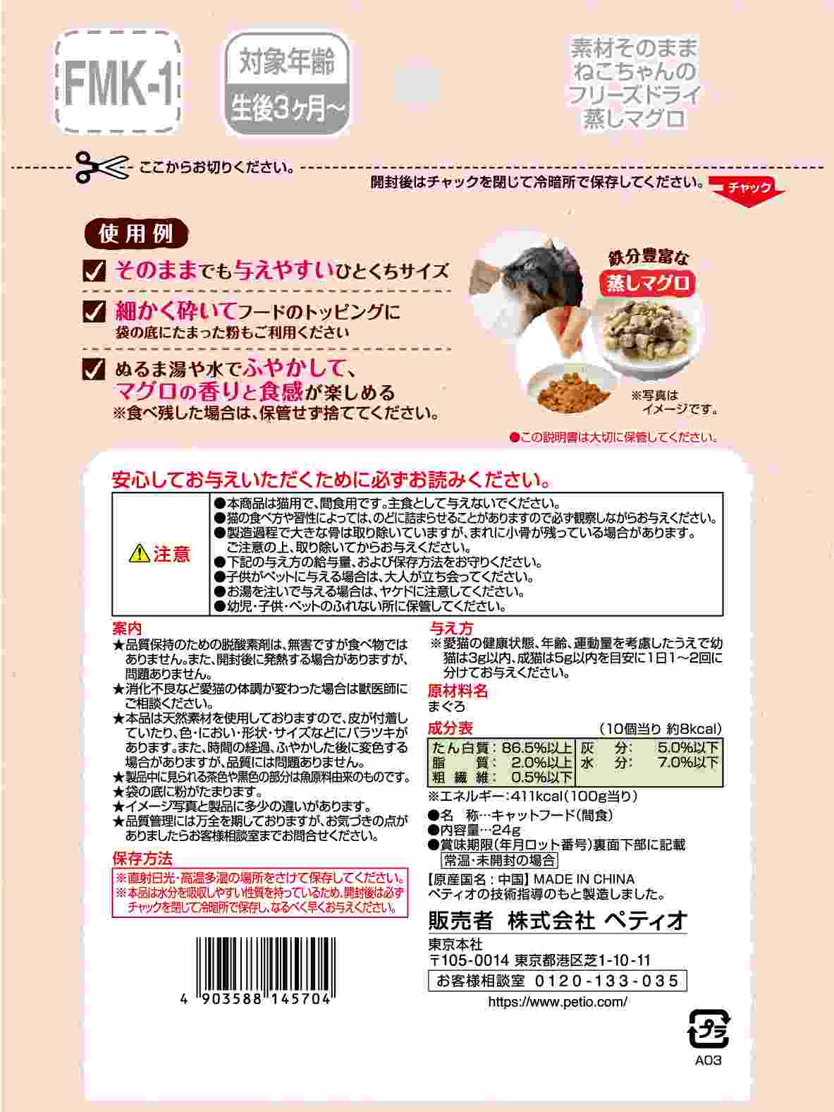ペティオ 素材そのまま ねこちゃんの 完全無添加 フリーズドライ 蒸しマグロ 24g