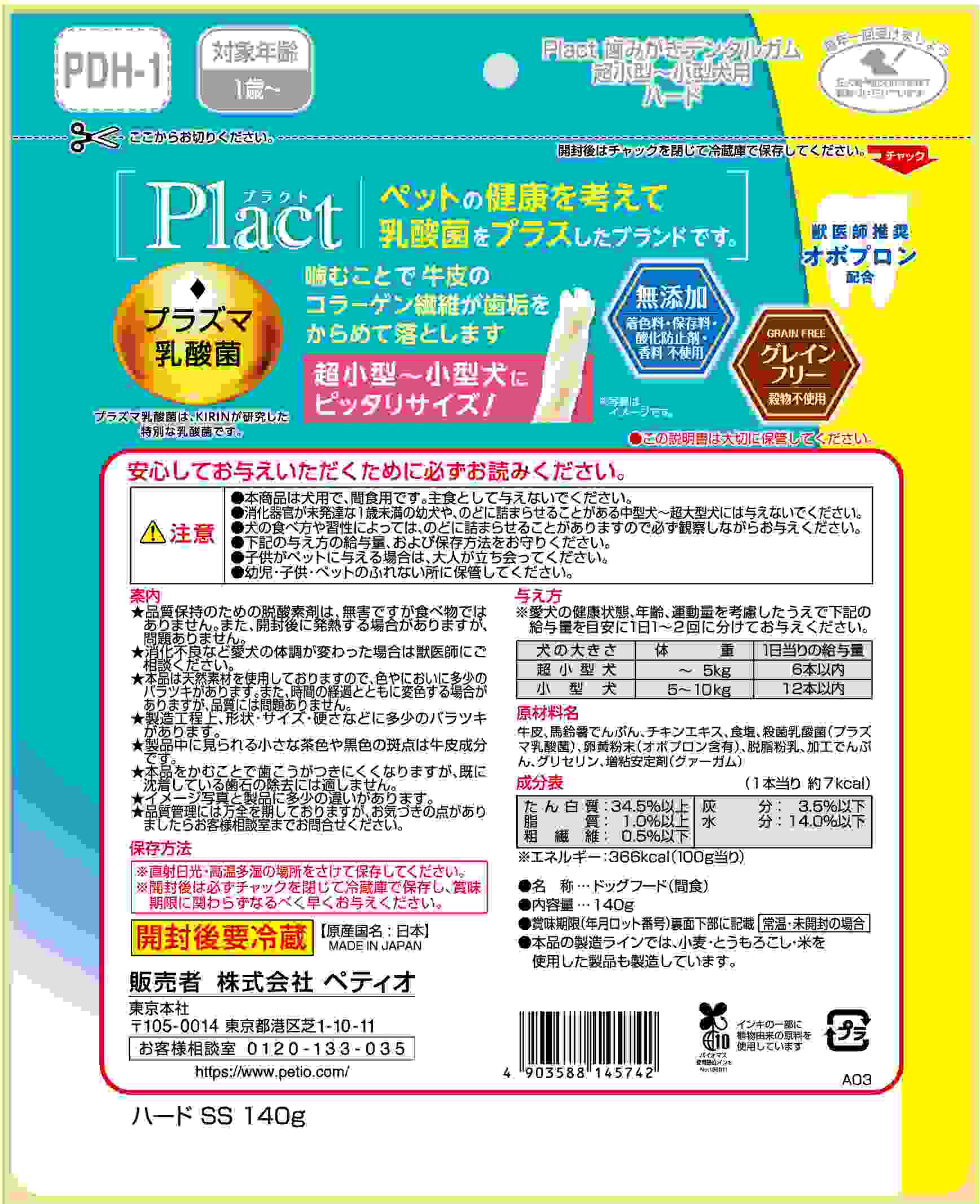 Plactはペットの健康を考えて乳酸菌をプラスしたブランドです。噛むことで牛皮のコラーゲン繊維が汚れをからめて落とします。超小型犬~小型犬にピッタリサイズ!グレインフリーだからワンちゃんの健康サポート・食物アレルギーケアができる。獣医師推奨オボプロン配合。着色料・保存料・酸化防止剤・香料無添加。お買い得なお徳用大容量パック。