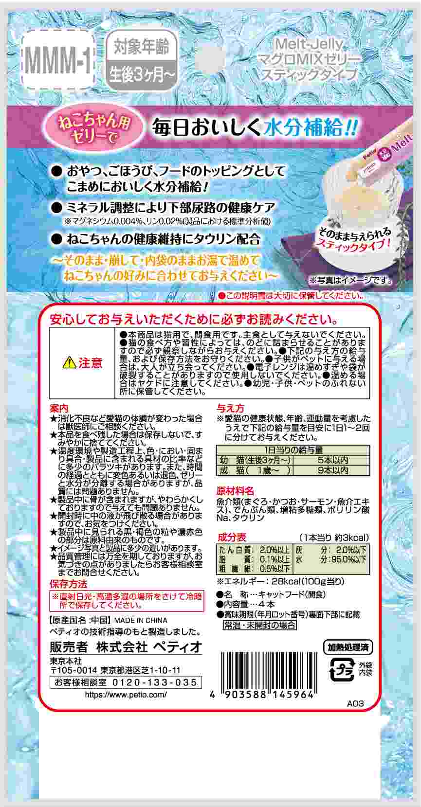 ペティオ メルトジュレ 水分補給 マグロMIXゼリー スティック 4本入