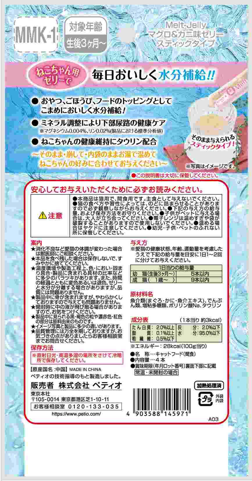 ペティオ メルトジュレ 水分補給 マグロ&カニ味ゼリー スティック 4本入