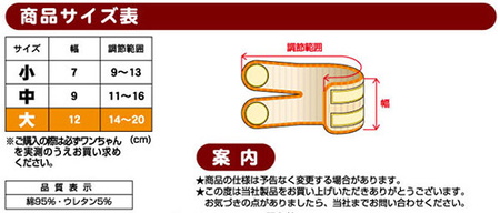 伸縮性がある生地でしっかりフィット。サイズ調節ができる二股ベルトタイプ。面ファスナーで広い調節が可能。