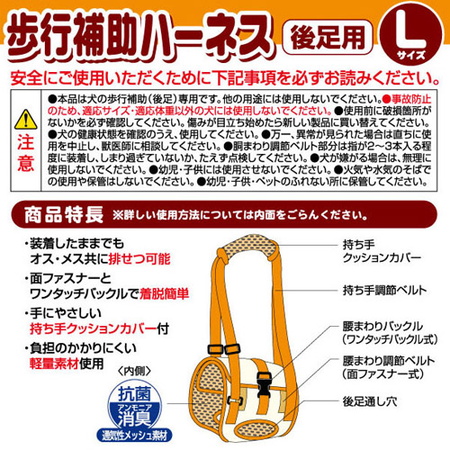 老犬介護用 歩行補助ハーネス 後足用 K Lサイズ