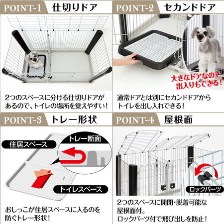 【ポイント3】トレー形状:おしっこが住居スペースに入るのを防ぐトレー形状!食べこぼし、そそうをしても床を汚さない!