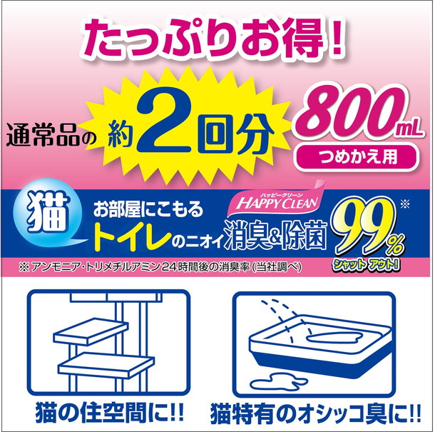 ペティオ Petio ハッピークリーン 猫トイレのニオイ 消臭&除菌 詰め替え用 800mL