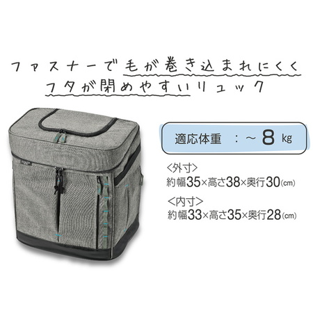 ファスナーで毛が巻き込まれにくく、フタが閉めやすいリュック。