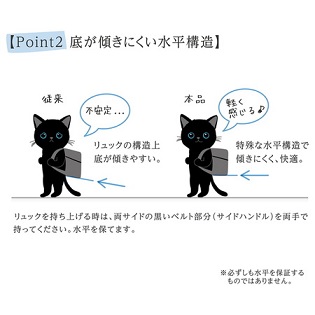 また、底が傾きにくい水平構造と便利な13の機能で猫とのお出かけを快適に。