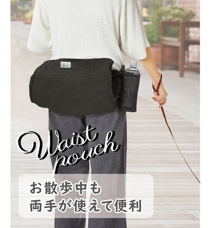 キャリーバッグとして使用しない時はウェストポーチ形状で、お散歩中も両手が使えて便利。