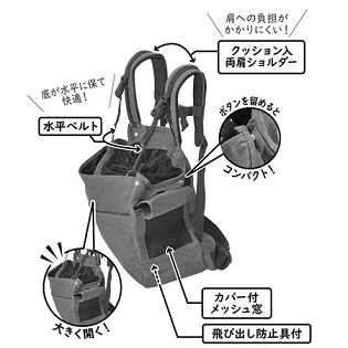 底を水平に保つ水平ベルトでお出かけ中もわんちゃん快適。