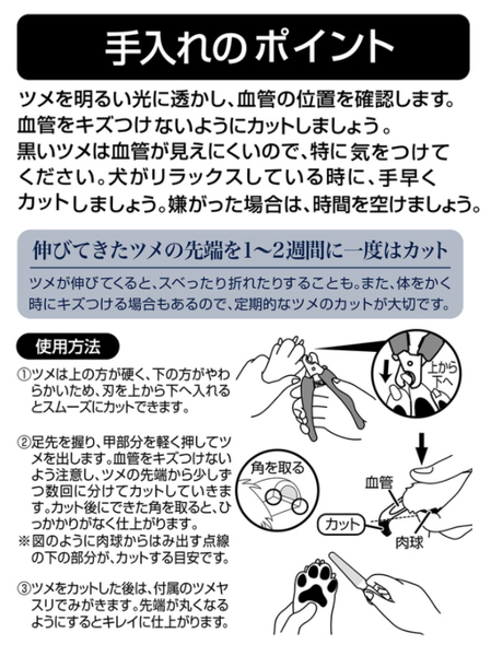 ●犬のツメに合わせた刃先で爪割れしにくい。