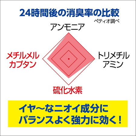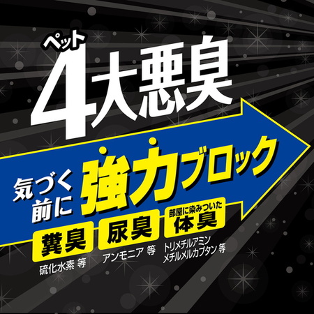 お部屋に充満するペット臭さ(アンモニア・硫化水素・トリメチルアミン・メチルメルカプタン)を強力ブロック。
