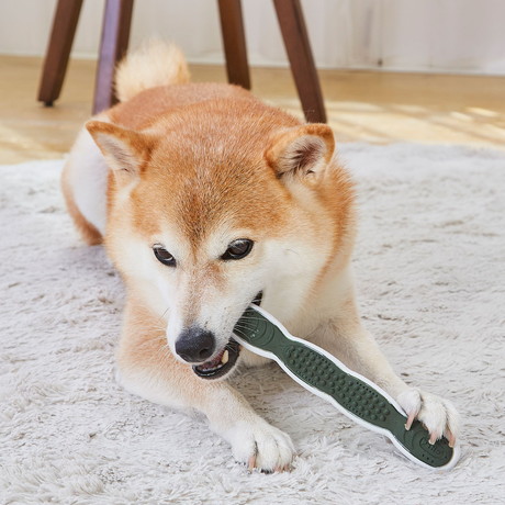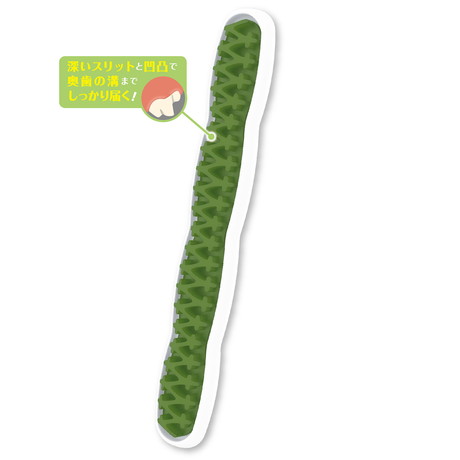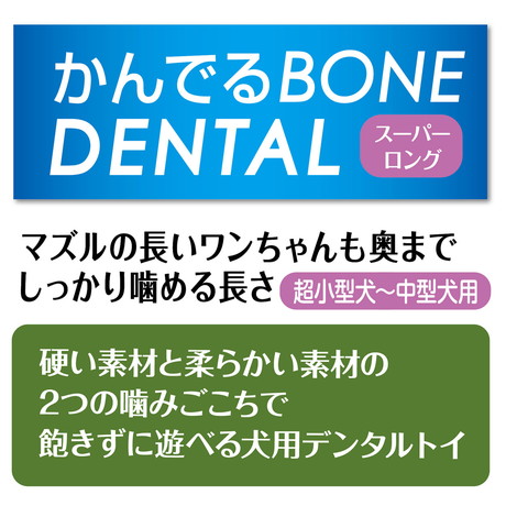 2つの噛みごこちで遊びながらお口の健康を維持。ラバーの突起が口内と舌を刺激する。ペーストポケットにデンタルジェルを塗り込むことで効果UP。中型犬やマズルの長いワンちゃんも奥歯までしっかり噛める長さ。