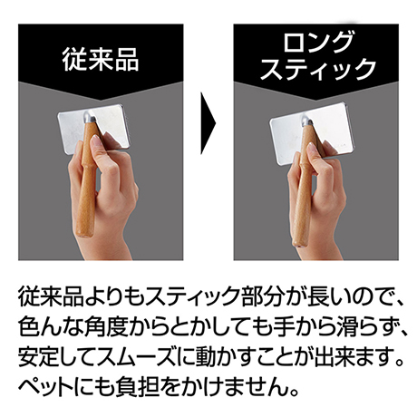 従来品より持ち手が長くなっており、持ちやすく安定してスムーズに動かすことが出来、ペットにも負担を掛けません。