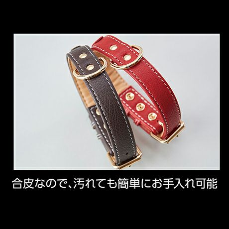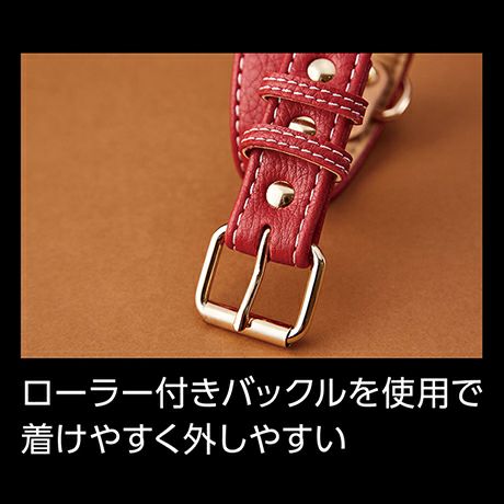 ●ピンバックルタイプの平首輪。●ローラー付きバックルを使用で着けやすく外しやすい。●こだわりぬいた風合いのデザインレザーを採用。●合皮なので、汚れてもお手入れ簡単。
