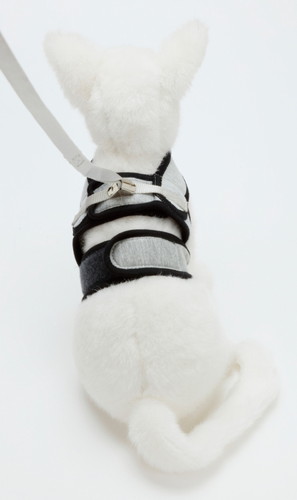 猫は体が柔らかいため、首・胴回りの2ヶ所をサイズ調節して体にフィットする形状。