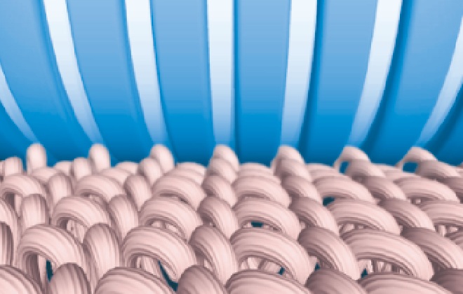 繊維の間に入って取るすじ塗り粘着テープで、髪の毛や花粉、ダニを取ります。