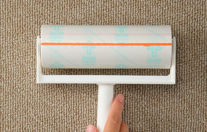 カーペットのすき間に入り込んだ髪の毛や、ゴミもしっかり取れるすじ塗り粘着タイプ
