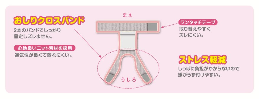 かんたん便利!うんちの時は、おしりバンドをはずせます。