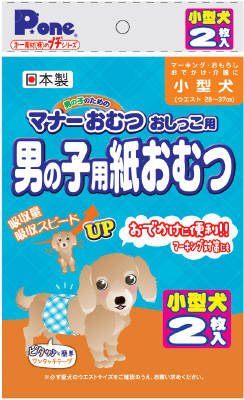 男の子のマーキング、おもらし、介護、おでかけに、使い捨てタイプのマナーベルトです!!吸収面積が広がり吸収力UP!! 新波型ストライプの表面材を採用し、吸収スピードUP!! 逆戻り極少!!吸収面積が広がり吸収力UP。男の子のマーキング、おもらし、介護、おでかけの用途で使用できる使い捨てマナーベルトです。<原材料> 表面材:ポリエチレン、ポリエステル系不織布。吸収材:綿状パルプ、吸収紙、高分子吸水材。帽子材:ポリエチレンフィルム。止着材:面ファスナー。伸縮材:ポリウレタン。結合剤:ホットメルト。 <内容数>超小型犬 2枚、小型犬 2枚、小中型犬 1枚、中型犬 1枚、中大型犬 1枚、大型犬 1枚≪使用方法≫ 内側のおしっこストップポケット(立体ギャザー)を起こします。※当製品に前後はありませんので、どちらからでもお使い頂けます。愛犬の局部をやさしく包み込むように、おなか側から巻き上げます。吸収体の中心に局部がくるように当ててあげると、上手に装着できます。※必ず局部がポケットの内側に収まっていることを確認してください。体にやさしくフィットするようにワンタッチテープを背中側でとめます。テープ位置は、愛犬にあわせて調節してください。 ≪使用上の注意≫ 用途以外には使用しないでください。紙おむつをハサミ等で切らないでください。汚れやモレの原因になります。使い捨てのペット用紙おむつですので、洗濯しないでください。汚れた紙おむつは、早めに取り替えてください。愛犬が、紙おむつをかんだり、ひっかいたりして、破らないようご注意ください。紙おむつは食べられませんのでご注意ください。万が一食べてしまった場合は、早急に獣医師にご相談ください。愛犬が、空き袋を破ったり、おもちゃにして遊ばないようにしてください。高温多湿を避け、直射日光の当たらない場所に保管してください。お子様や愛犬の手の届かないところに保管してください。 ※汚れた部分を内側にして小さく丸め、不衛生にならないように処理してください。※紙おむつはトイレに捨てないでください。※外出時に使った紙おむつは必ず持ち帰り、ご家庭で処理してください。※処理の方法はお住いの地域のルールに従ってください。