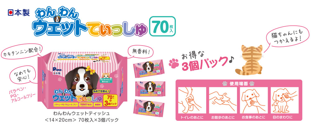 【商品名】 わんわんウェットてぃっしゅ 70枚×3P