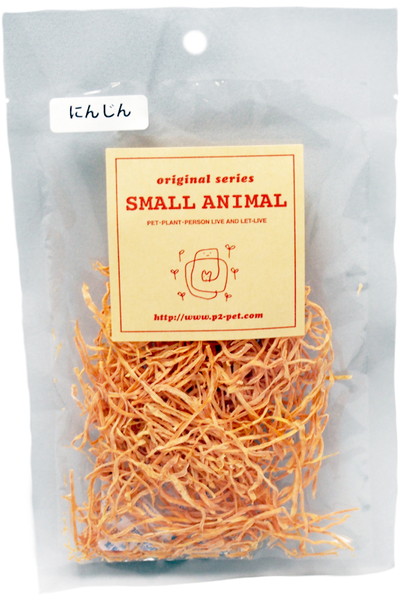 【商品説明】おひさまの光をいっぱい浴びた九州育ちの新鮮なニンジンをスライスして優しく低温で乾燥させました。安全安心のおいしさをお届けします。無添加・無着色・無加糖で収穫したての色・味・香りを乾燥させた後でも楽しめるように乾燥時間や温度を最大限追求した逸品です。里山のおいしさをぎゅっと凝縮。いつものゴハンにプラスして小動物たちの食事をもっと楽しく!ニンジン(キャロット)の名前の由来にもなっているくらいカロテンが豊富に含まれています。β-タカロテンは、抗発ガン作用や免疫力向上で知られていますが、他にも被毛・粘膜・皮膚などの健康維持、喉や肺など呼吸器系統を守る働きがあると言われています。