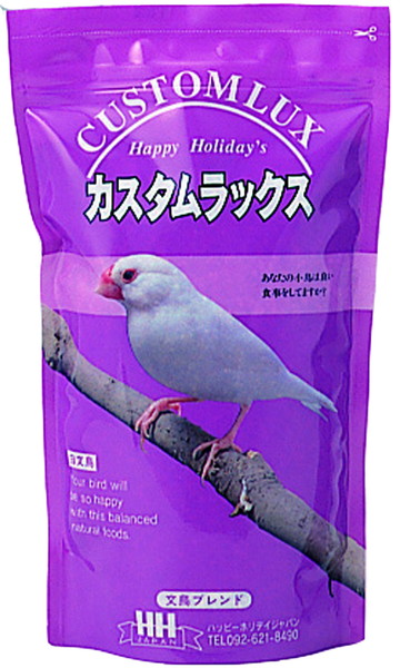 【商品説明】自然界と全く同じ食事をさせてあげる事は不可能ですが、自然の動物たちが毎日食べる食事に限りなく近づけてあげたい。食性、習性、生息環境、採食行動などあらゆる角度からペットたちが喜んでくれる心身ともに健康なより良い食事について考えました。『カスタムラックス』が特に大切にしているのは、「新鮮さ」と「配合」です。殻付の新鮮な種子たちは、発芽するために必要なエネルギーを蓄えています。その事を小鳥たちは知っています。小鳥たちが大好きなたくさんの新鮮な種子を配合した文鳥用フードです。お米が大好きな文鳥の為に国産の青米や籾(モミ)を厳選し多めに配合しています。色んな種類の種子をブレンドし選ぶ楽しみがあり、飽きさせません。