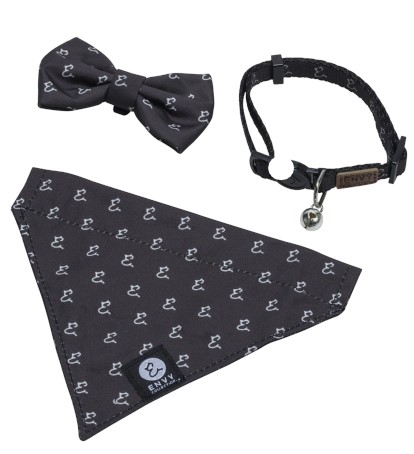 やわらかい布製のリボンとバンダナがついている首輪セット。可愛くコーディネートしてあげてください。