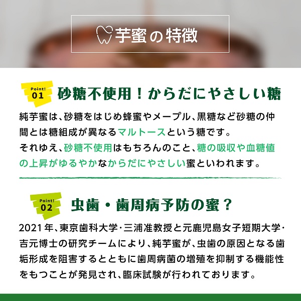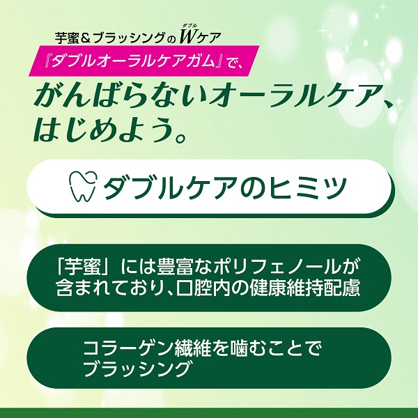 芋蜜の豊富なポリフェノールとガムのブラッシング効果で健康維持に配慮します。