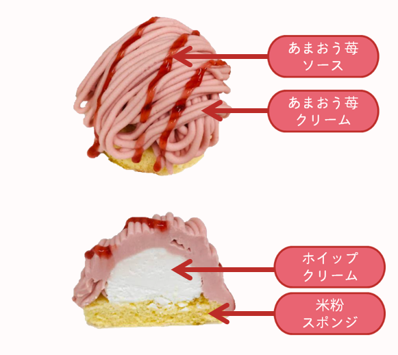 福岡県産あまおう苺ピューレを使用。甘酸っぱい苺の香あふれるモンブランに仕上げました。
