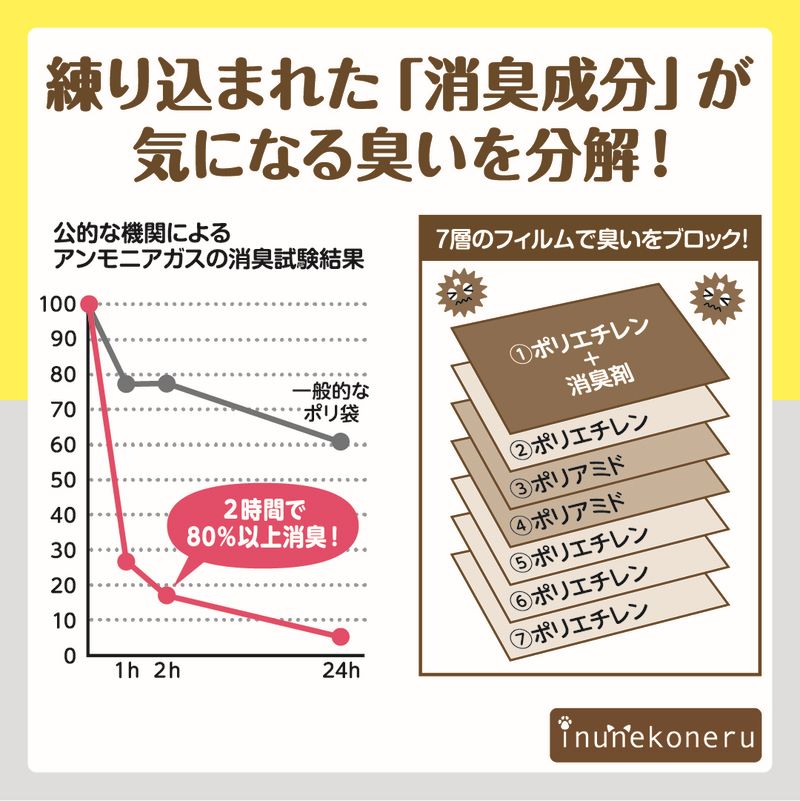 消臭成分の入ったフィルムが気になる臭いを分解、7層のフィルムが嫌なニオイをブロック!!