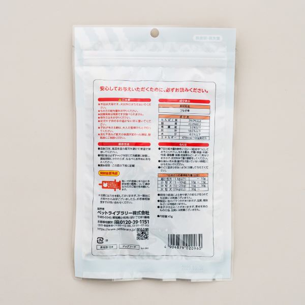 ●給与量を参考に1日2‐3回おやつとしてお与えください。与える量は、犬種・体重・年齢・性質・運動量・体調・妊娠期などによって異なりますので、状況をみて量の調整をしてください。
