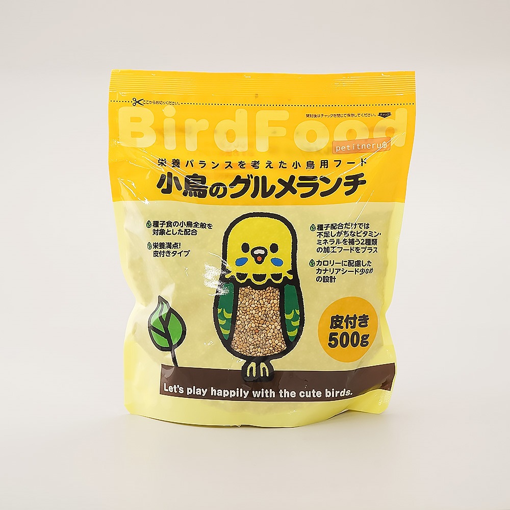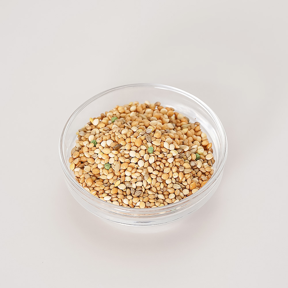 栄養満点!皮付きタイプ! ビタミン・カルシウムを補う加工フードをブレンド! 噛んで、むいて、おいしさ満喫。自然のままの美味しさを。 ・種子食の小鳥全般を対象とした配合 ・種子配合だけでは不足しがちなビタミン・ミネラルを補う2種類の加工フードをプラス ・カロリーに配慮したカナリアシード少なめの設計