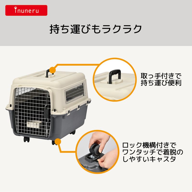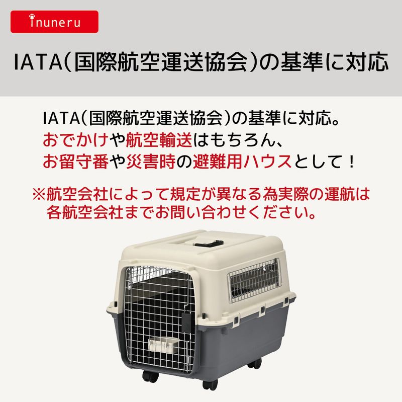 おでかけや航空輸送はもちろん、お留守番や災害時の避難用ハウスとして!※航空会社によって規定が異なる為実際の運航は各航空会社までお問い合わせください。・ロック機能が付いたバックルとねじ留めのダブルできっちり固定・扉は取り付け場所によって2方向に開けることが可能・ロック機構付きで脱着のしやすいキャスター・取っ手付きで持ち運び便利 ※L70は天面の取手は1個です