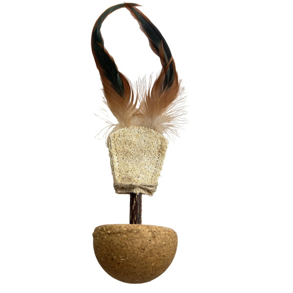 羽毛が本物の鳥の羽のような動きをするので、猫ちゃんの興味を引きつけます。底座はマタタビ木材で作られており、頑丈で壊れにくい設計です。このおもちゃは耐久性を考慮したデザインで、運動不足の肥満猫や活発な多頭飼いの家庭に最適です!またたびと虫えい果好きな猫ちゃんへ!